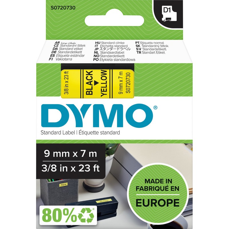 DYMO® Schriftband D1 für LabelPoint 200, 250, 300, 350, LabelManager 100+, 120P, 150, 160, 200, 210D, 220P, 260, 280P, 300, 350D, 360D, 400, 420P, 450D, 500TS, PnP Wireless, MobileLabeler. Breite 9 mm, Länge 7 m