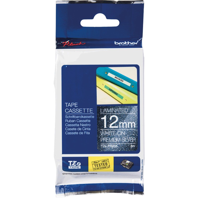 BROTHER P-touch Schriftband TZe laminiert wisch-, wetter- und kratzfest, temperatur- und UV-beständig, für zu Hause, im Büro und am Arbeitsplatz. Breite 12 mm, Länge 8 m