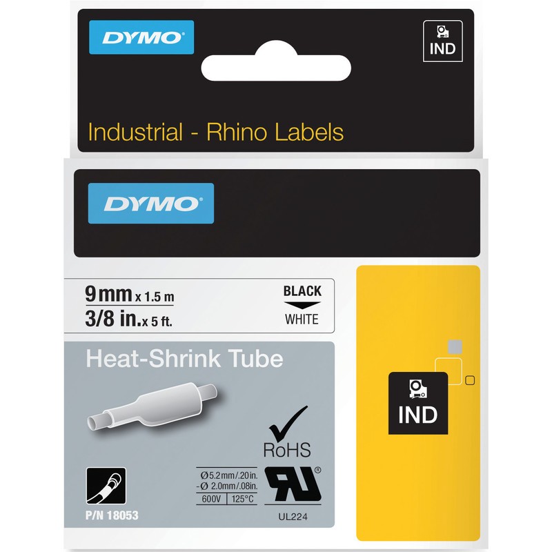 DYMO® Schrumpfschlauch Rhino(TM) für DYMO® Rhino(TM) 3000, 4200, 5000, 5200, 6000, M 1011, XTL-300, XTL-500 und Rhinopro 5000. Breite 9 mm, Länge 1,5 m