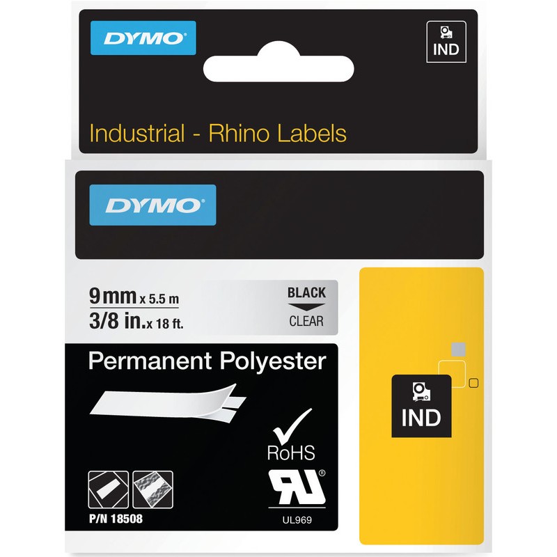 DYMO® Schriftband Rhino(TM) IND für DYMO® Rhino(TM) 3000, 4200, 5000, 5200, 6000, M1011, XTL-300, XTL-500 und Rhinopro 5000. aus PES, Länge 5,5 m temperaturbeständig von -10 bis +80°C.