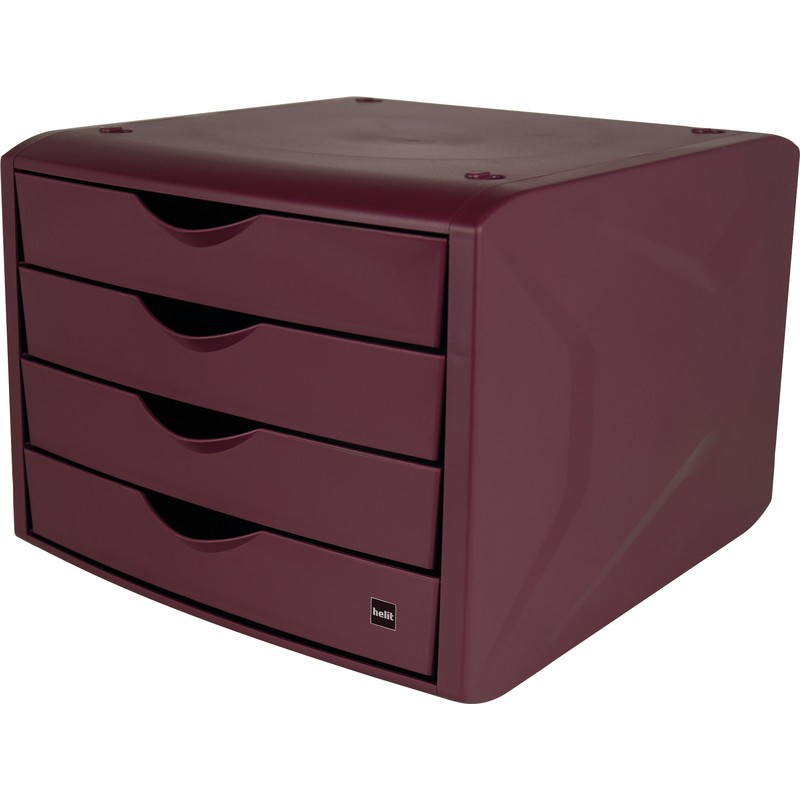 HELIT Schubladenelement the green chameleon aus 80% recyceltem Post Consumer Abfall (PCR), mit 4 geschlossenen Schubladen, stapelbar, Auszugsstopp, matte Oberfläche, für Format A4. Aussenmasse: B 260 x H 212 x T 330 mm. Nachhaltigkeit eco:plus: verlängertes Produktleben, recyclingfähig, recycelter Bestandteil, Recycelgehalt Abfall vor Gebrauch max. 97%, Recycelgehalt Abfall nach Gebrauch max. 100%, Abfallminderung, umweltfreundliche Verpackung. Zertifikat: Der Blaue Engel.