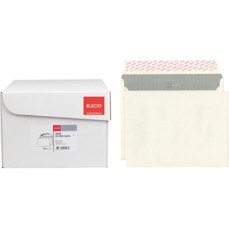 ELCO Briefumschläge Documento mit Seitenfalten, beige beige Kraft, Seitenfalten 20 mm, Innendruck grau. Nachhaltigkeit eco:plus: recyclingfähig. B5, mit Optifix® Haftklebeverschluss 250 x 176 mm, Façon DNS-HK. Schachtel zu 250 Stück.