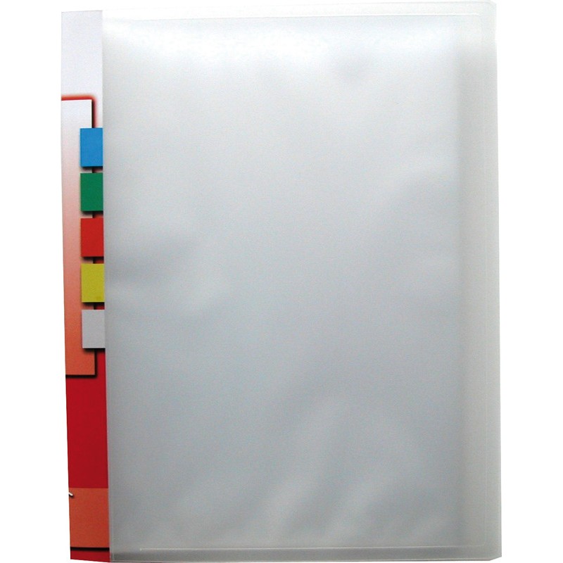 KOLMA® easy Sichtbuch Einband aus halbtransparentem KolmaFlex-Material, mit Rückenstreifen für Beschriftung, eingeschweisste Sichtbuchtaschen CopyResistant, für Format A4. Nachhaltigkeit eco:plus: recyclingfähig, Recycelgehalt Abfall nach Gebrauch max. 100%. mit 40 Sichtbuchtaschen
