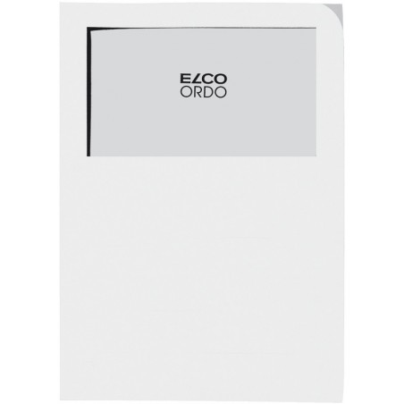 ELCO Sichthüllen Ordo classico aus Papier, 120 g/m2, Mappengrösse 220 x 310 mm, Sichtfenster Format 180 x 100 mm, für Format A4. Nachhaltigkeit eco:plus: recyclingfähig, recycelter Bestandteil. Zertifikat: FSC. ohne Beschriftungsvordruck Schachtel zu 100 Stück.