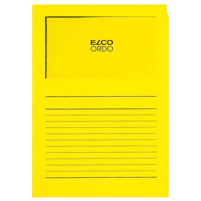 ELCO Sichthüllen Ordo classico aus Papier, 120 g/m2, Mappengrösse 220 x 310 mm, Sichtfenster Format 180 x 100 mm, für Format A4. Nachhaltigkeit eco:plus: recyclingfähig, recycelter Bestandteil. Zertifikat: FSC. mit Beschriftungsvordruck Schachtel zu 100 Stück.