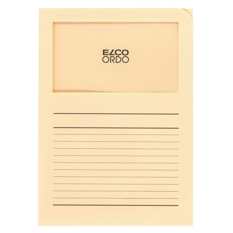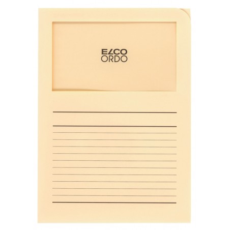 ELCO Sichthüllen Ordo classico aus Papier, 120 g/m2, Mappengrösse 220 x 310 mm, Sichtfenster Format 180 x 100 mm, für Format A4. Nachhaltigkeit eco:plus: recyclingfähig, recycelter Bestandteil. Zertifikat: FSC. mit Beschriftungsvordruck Schachtel zu 100 Stück.