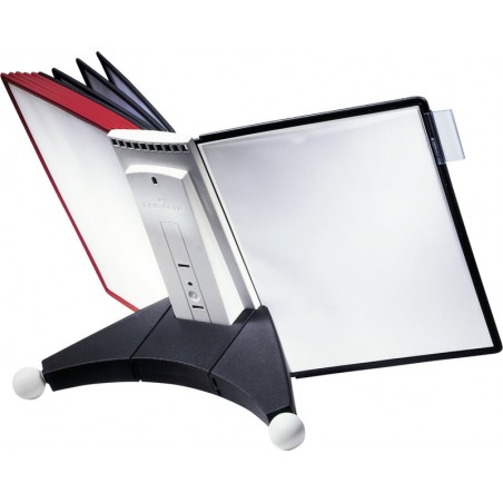 DURABLE Sichttafelsystem Sherpa® Table 10 extrem stabil, rutschfest, erweiterbar mit Erweiterungsmodul 5624. Set zu Modultischständer, 10 reflexionsarme, scannertaugliche Sichttafeln für Format A4, farbig sortiert, und 10 Reiter 58 mm mit blanko Einsteckschildern. Garantie: 5 Jahre. Nachhaltigkeit eco:plus: recyclingfähig, recycelter Bestandteil, Recycelgehalt Abfall vor Gebrauch max. 5%.