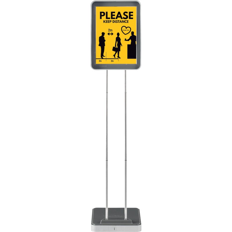 DJOIS tarifold Sichttafelsystem Bodenständer Infostand Classic kann mit zusätzlichen Einzelblatt- oder Prospekthaltern kombiniert werden, im Hoch- und Querformat verwendbar, dank einzigartigem Klip-System für Format A5 und A4 verwendbar, höhenverstellbar bis max. 150 cm, Neigungswinkel 7°, Standsockel 8,4 kg. Masse: B 50 x H 150 x T 36 cm.