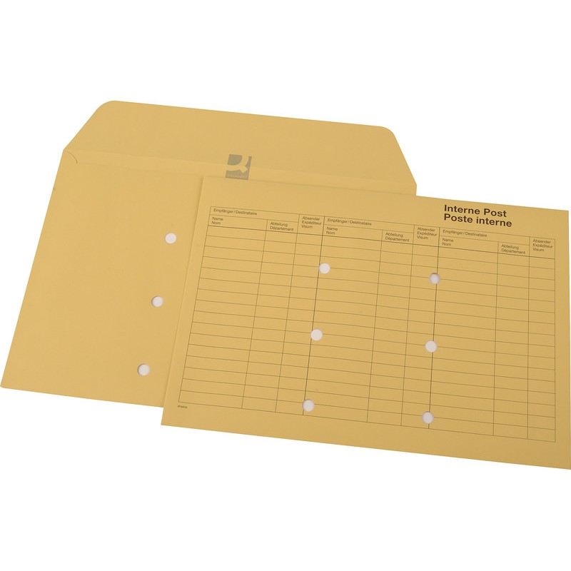 Q-CONNECT® Briefumschläge Interne Post braun Kraft, ungummiert, 6 x gelocht. Schachtel zu 100 Stück.