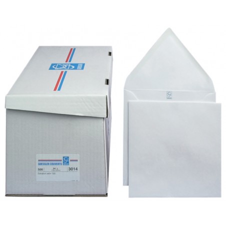 GOESSLER Spezial-Briefumschläge in Bürogrosspackung weiss, ohne Innendruck. Nachhaltigkeit eco:plus: recyclingfähig, umweltfreundliche Verpackung. 175 x 175 mm, gummierter Verschluss Façon L. Schachtel zu 500 Stück.
