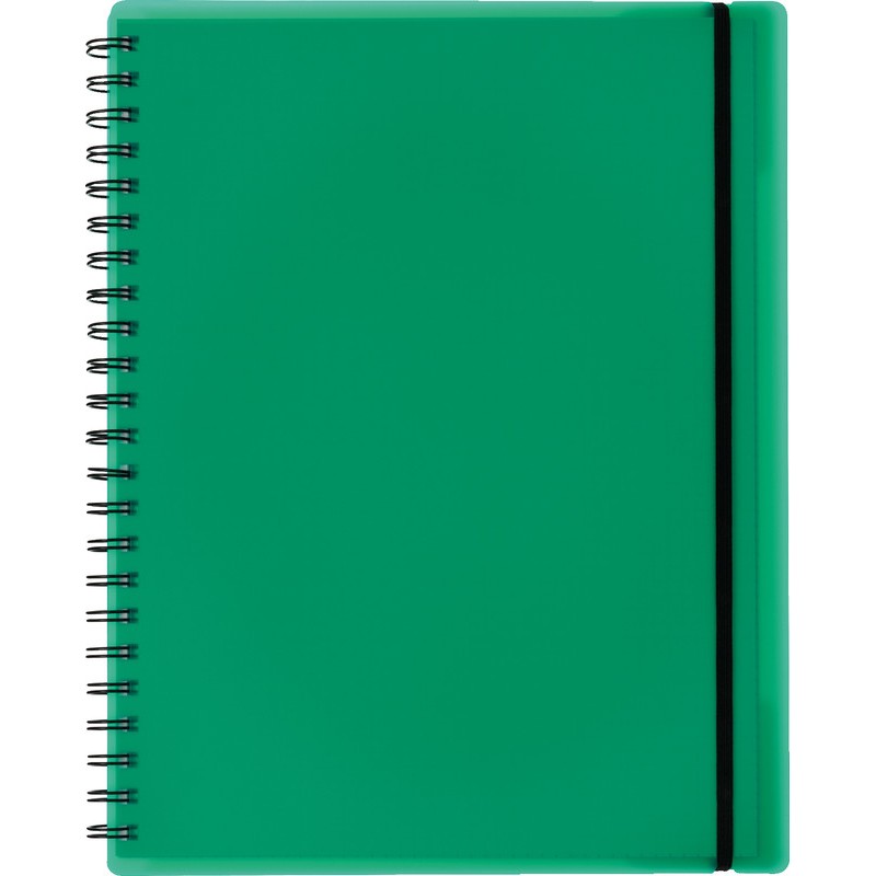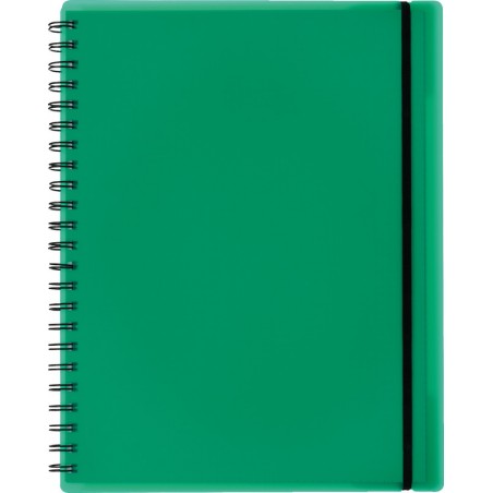 KOLMA® easy Collegeblock Einband aus halbtransparentem KolmaFlex-Material, Papier weiss, 70 g/m2, 5 mm kariert, 200 Seiten, perforiert, Doppelspiralbindung, Gummibandverschluss, im Hinterdeckel integrierte Sammelmappe für loses Papier. Nachhaltigkeit eco:plus: zerlegbar konstruiert, verlängertes Produktleben, recyclingfähig, Recycelgehalt Abfall nach Gebrauch max. 100%. Format A4 mit 4 Loch.
