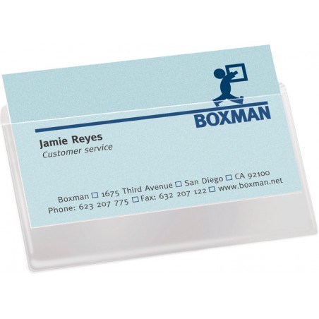 DJOIS Visitenkartentaschen PP 120 Micron, transparent, selbstklebend, mit Griffausschnitt, Format 95 x 60 mm. Nachhaltigkeit eco:plus: recyclingfähig, Recycelgehalt Abfall nach Gebrauch max. 67%.