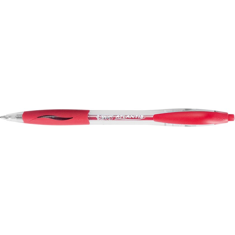 BIC® Kugelschreiber Atlantis Classic Schaft transparent, gummierte Griffzone und Kunststoffclip in der Schreibfarbe, Druckmechanik, nachfüllbar, Strichbreite 0,32 mm. Nachhaltigkeit eco:plus: Zertifikat: NF Environment.