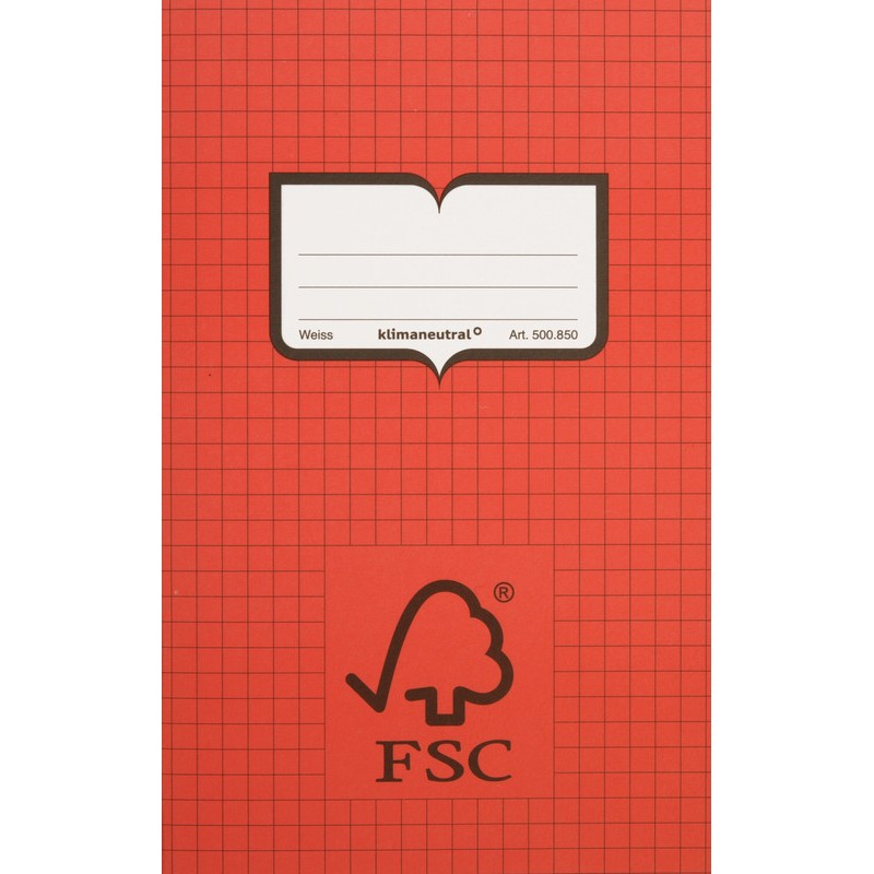 NATURA LINE Schulheft zertifiziert Papier weiss, 90 g/m2, ohne Löschblatt, jede Lineatur hat eine eigene Umschlag-Farbe, klimaneutral. Nachhaltigkeit eco:plus: recyclingfähig. Zertifikat: FSC. Stab 8° / E6 40 Seiten, Format: 110 x 175 mm.