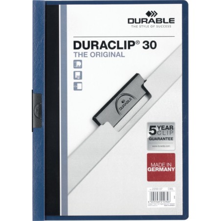 DURABLE Klemmhefter Duraclip® 30 für ungelochtes Schriftgut, Vorderdeckel transparente Hartfolie, Rückendeckel farbig, Klemme aus Stahl, Fassungsvermögen bis 30 Blatt 80 g/m2. Garantie: 5 Jahre auf die Klemme. Nachhaltigkeit eco:plus: recyclingfähig, recycelter Bestandteil, Recycelgehalt Abfall vor Gebrauch max. 5%, Recycelgehalt Abfall nach Gebrauch max. 2%. für Format A4