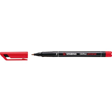 STABILO® OHPen universal permanent Clip, universell einsetzbarer Faserschreiber, nicht nur für Folien geeignet, sondern auch für den Einsatz auf fast allen glatten Oberflächen, nicht nachfüllbar. Nachhaltigkeit eco:plus: umweltfreundliche Verpackung. fein (F), Strichbreite ca. 0,7 mm