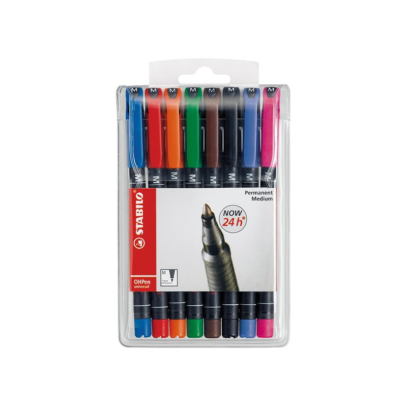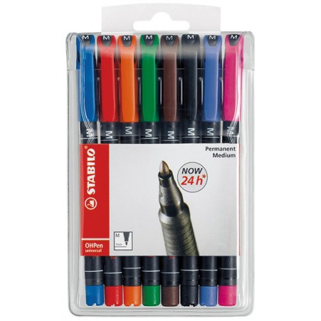 STABILO® OHPen universal permanent Clip, universell einsetzbarer Faserschreiber, nicht nur für Folien geeignet, sondern auch für den Einsatz auf fast allen glatten Oberflächen, nicht nachfüllbar. Nachhaltigkeit eco:plus: umweltfreundliche Verpackung. mittel (M), Strichbreite ca. 1 mm