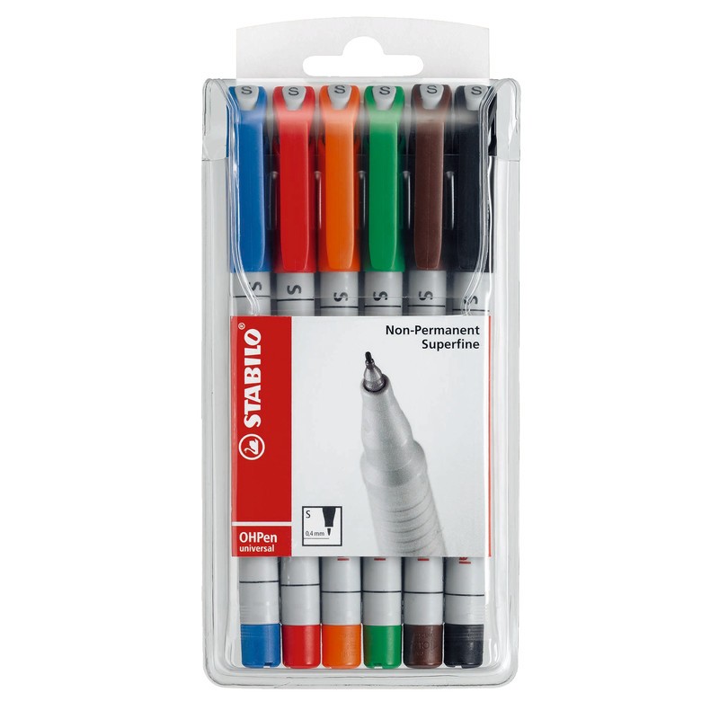STABILO® OHPen universal wasserlöslich Clip, universell einsetzbarer Folienschreiber, nicht nur für Folien geeignet, sondern auch für den Einsatz auf fast allen glatten Oberflächen, wasserlösliche Tinte, feucht abwischbar, nicht nachfüllbar. Nachhaltigkeit eco:plus: umweltfreundliche Verpackung. superfein (S), Strichbreite ca. 0,4 mm