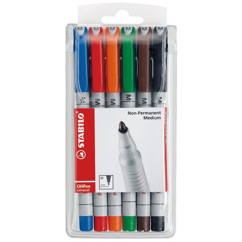 STABILO® OHPen universal wasserlöslich Clip, universell einsetzbarer Folienschreiber, nicht nur für Folien geeignet, sondern auch für den Einsatz auf fast allen glatten Oberflächen, wasserlösliche Tinte, feucht abwischbar, nicht nachfüllbar. Nachhaltigkeit eco:plus: umweltfreundliche Verpackung. mittel (M), Strichbreite ca. 1 mm