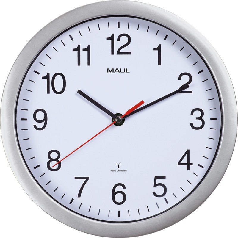 MAUL Wanduhr run Gehäuse aus bruchfestem Kunststoff, Abdeckung aus Mineralglas, Sekundenzeiger, Batteriebetrieb 1 x AA (mitgeliefert). Masse: Ø 252 mm, T 50 mm. Preis inkl. VRG. Funkuhr automatische Synchronisation mit DCF77-Signal, mit automatischer Sommer- und Winterzeiteinstellung.