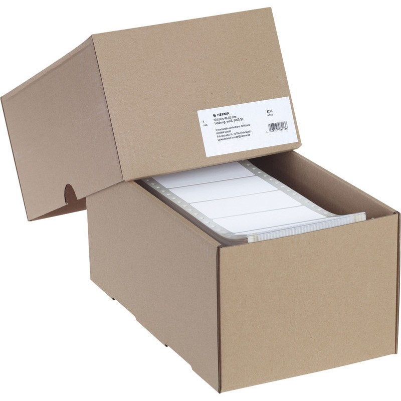 HERMA Computer-Etiketten, Grosspackung weisse, unbedruckte Etiketten, selbstklebend, mit Führungslochrand, Etiketten- und Trägerpapier chlorfrei gebleicht, lösungsmittelfreier Haftkleber. Nachhaltigkeit eco:plus: Zertifikat: FSC. 1bahnig