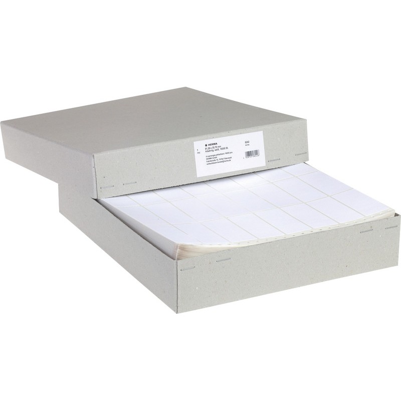 HERMA Computer-Etiketten, Grosspackung weisse, unbedruckte Etiketten, selbstklebend, mit Führungslochrand, Etiketten- und Trägerpapier chlorfrei gebleicht, lösungsmittelfreier Haftkleber. Nachhaltigkeit eco:plus: Zertifikat: FSC. 4bahnig
