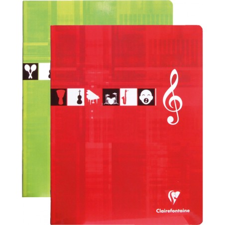 CLAIREFONTAINE Musiknoten- und Singheft Einband laminiert, Papier weiss 90 g/m2, ohne Rand, rechte Seite: 10 Systeme, mit Textlinien, linke Seite: Lineatur, farbig sortiert, grün und blau. Nachhaltigkeit eco:plus: recyclingfähig. Zertifikat: PEFC.