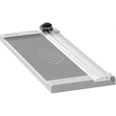 LEITZ® Hobby-Roll- und Schnitt-Schneidemaschine Precision Home A4 geschliffenes, rotierendes Rundmesser, Messerschutz durch geschlossenen Kunststoffkopf, aufklappbaren Papierklemme, automatische Pressung an der Schnittstelle, transparente Anpressschiene, Massskala in mm, verschiedene Winkelmarkierungen auf dem Schneidetisch, auswechselbarer Messerkopf, schneidet pro Vorgang bis zu 8 Blatt, Schnittlänge 305 mm. Masse: B 153 x H 46 x T 376 mm. Gewicht: 0,3 kg.
