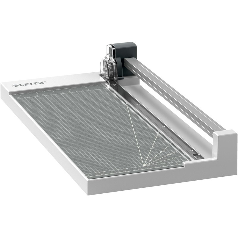 LEITZ® Roll-Schneidemaschine Precision Home Office A4 geschliffenes, rotierendes Rundmesser, Messerschutz durch geschlossenen Kunststoffkopf, transparente Anpressschiene, Massskala in mm, verschiedene Winkelmarkierungen auf dem Schneidetisch, glatte Kunststoffarbeitsfläche, stabiler Kunststoffsockel, auswechselbarer Messerkopf, schneidet pro Vorgang bis zu 10 Blatt, Schnittlänge 305 mm. Masse: B 209 x H 77 x T 410 mm. Gewicht: 630 g. Garantie: 3 Jahre.