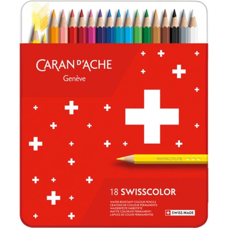 CARAN D'ACHE Farbstifte Swisscolor(TM) nicht wasserlöslich, lichtechte Farben, hohe Deckkraft, feine Mine Ø 2,8 mm, geeignet für Trocken- und Feinzeichnen sowie Malen, für Nachwuchskünstler und Familien. Nachhaltigkeit eco:plus: Zertifikat: FSC. in Metallschachtel