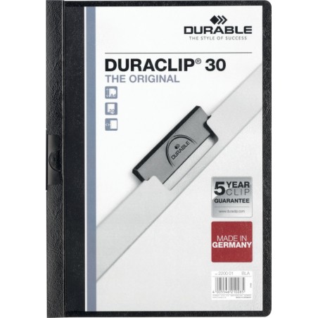 DURABLE Klemmhefter Duraclip® 30 für ungelochtes Schriftgut, Vorderdeckel transparente Hartfolie, Rückendeckel farbig, Klemme aus Stahl, Fassungsvermögen bis 30 Blatt 80 g/m2. Garantie: 5 Jahre auf die Klemme. Nachhaltigkeit eco:plus: recyclingfähig, recycelter Bestandteil, Recycelgehalt Abfall vor Gebrauch max. 5%, Recycelgehalt Abfall nach Gebrauch max. 2%. für Format A4