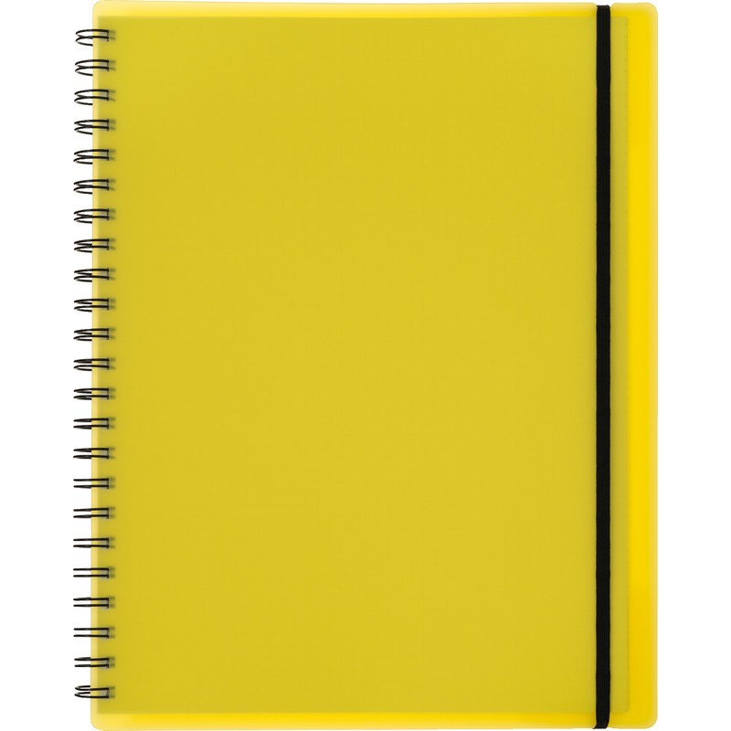 KOLMA® easy Collegeblock Einband aus halbtransparentem KolmaFlex-Material, Papier weiss, 70 g/m2, 5 mm kariert, 200 Seiten, perforiert, Doppelspiralbindung, Gummibandverschluss, im Hinterdeckel integrierte Sammelmappe für loses Papier. Nachhaltigkeit eco:plus: zerlegbar konstruiert, verlängertes Produktleben, recyclingfähig, Recycelgehalt Abfall nach Gebrauch max. 100%. Format A4 mit 4 Loch.