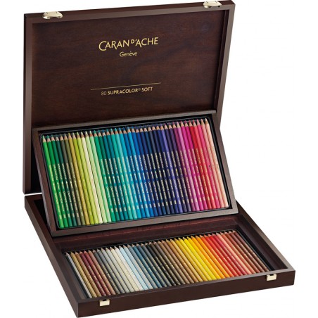 CARAN D'ACHE Farbstifte Supracolor(TM) Soft Holzkoffer wasservermalbare, lichtechte Farben, ausserordentlich hohe Deckkraft, Dickkern-Farbstifte mit weicher Mine, Ø 3,8 mm, geeignet für Trocken- und Nasszeichnen, Aquarelle, für Künstler, Illustratoren und Grafiker, in Holzkoffer aus Birken- und Buchenholz. Nachhaltigkeit eco:plus: Abfallminderung, umweltfreundliche Verpackung. Zertifikat: FSC.