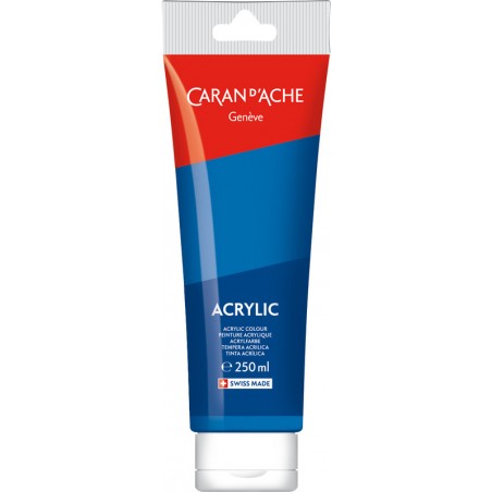 CARAN D'ACHE Acrylic leuchtende Acrylfarben, bilden keine Risse, werden nicht matt, lichtecht, mit Wasser verdünnbar, hohe Pigmentkonzentration, geeignet für glatte und strukturierte Oberflächen wie Leinwand, Gewebe, Stoff, Papier, Karton, Glas, Kunststoff, Metall, Holz etc., kann mit Pinsel oder Spachtel aufgetragen werden. Tube zu 250 ml.