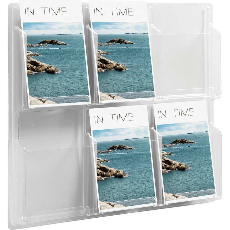 HELIT Wanddisplay the clearly aus PETG, aus einem Stück gefertigt, Fachtiefe 46 mm. Nachhaltigkeit eco:plus: verlängertes Produktleben, recyclingfähig, Recycelgehalt Abfall nach Gebrauch max. 100%, Abfallminderung. für Format A5