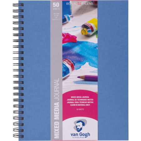 VAN GOGH Skizzenbuch Block Mixed Media Zeichenpapier weiss, 160 g/m2, lignin- und säurefrei, geeignet für Farbstifte, Acryl, Gouache, Aquarell usw., Spiralbindung, 50 Blatt, perforiert. Nachhaltigkeit eco:plus: Zertifikat: FSC.
