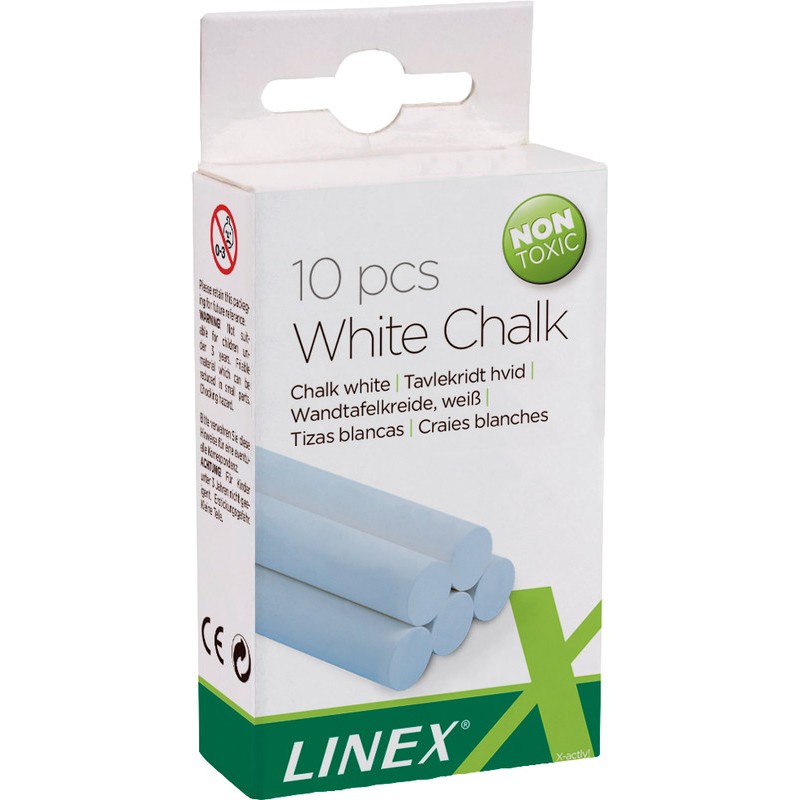 LINEX® Kreiden staubfrei rund, Ø 10 mm, Länge 80 mm, geeignet für Wandtafeln, Papier und Karton. Schachtel zu 10 Stück.