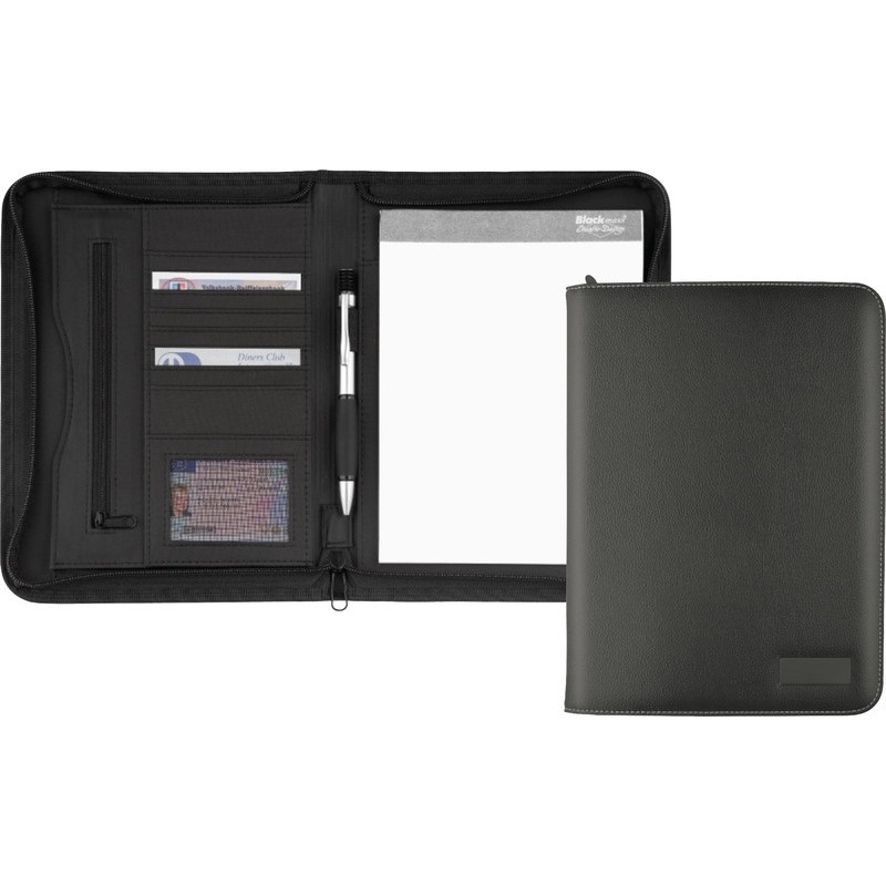 BLACKMAXX® Schreibmappe Executive A5 aus PU, mit Reissverschluss, Blockhalterung inkl. Schreibblock, Stiftschlaufe, Reissverschlussfach, 8 Kartenfächer, Einstecktasche, für Format A5. Masse: B 190 x H 250 mm.