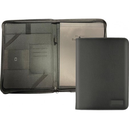 BLACKMAXX® Schreibmappe Executive A4 aus PU, mit Reissverschluss, Blockhalterung inkl. Schreibblock, Gummizugschlaufe für Aufladekabel, 2 Universalhalter für Tablets bis 13', Smartphonehalter, Stiftschlaufe, Reissverschlussfach, 3 Visitenkartenfächer, Einstecktasche, für Format A4. Masse: B 254 x H 340 mm.