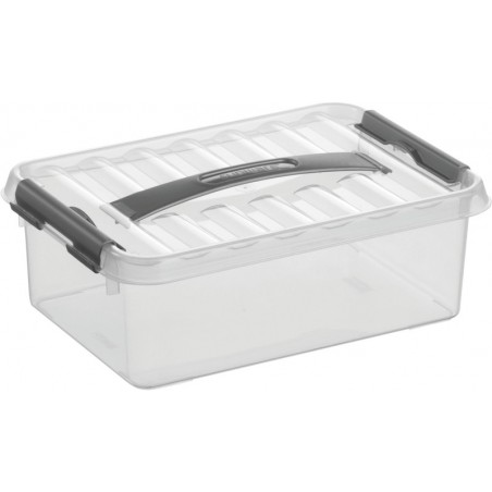 HELIT Aufbewahrungsbox the q-line aus transparentem PP, Deckel mit Clip verschliessbar, stapelbar. Nachhaltigkeit eco:plus: verlängertes Produktleben, recyclingfähig, Recycelgehalt Abfall nach Gebrauch max. 100%, Abfallminderung. mit Tragegriff
