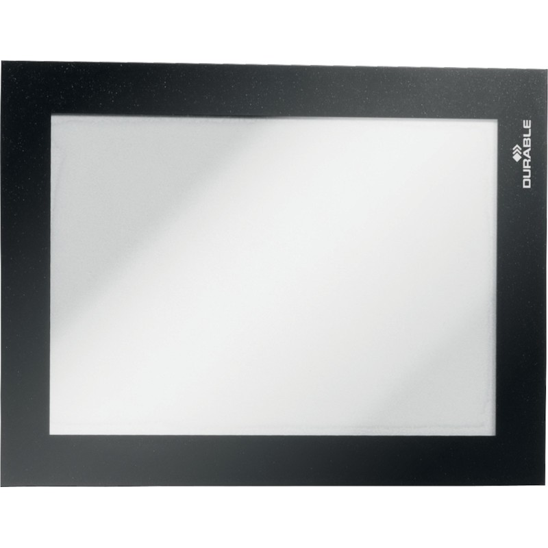 DURABLE Info-Rahmen Duraframe® selbstklebend, mit aufklappbarer, magnetischer Vorderseite für schnelles und bequemes Einlegen und Wechseln von Informationen, haftet dauerhaft auf allen gängigen Oberflächen und kann von glatten und festen Untergründen wie z. B. Glas wieder entfernt und neu angebracht werden, geeignet für Raumkennzeichnungen, Orientierungsinformationen, Angebote etc., doppelseitige Lesbarkeit, einsetzbar im Hoch- und Querformat. Packung zu 2 Stück.