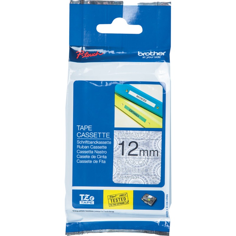 BROTHER P-touch Schriftband TZe laminiert wisch-, wetter- und kratzfest, temperatur- und UV-beständig, für zu Hause, im Büro und am Arbeitsplatz. Breite 12 mm, Länge 4 m