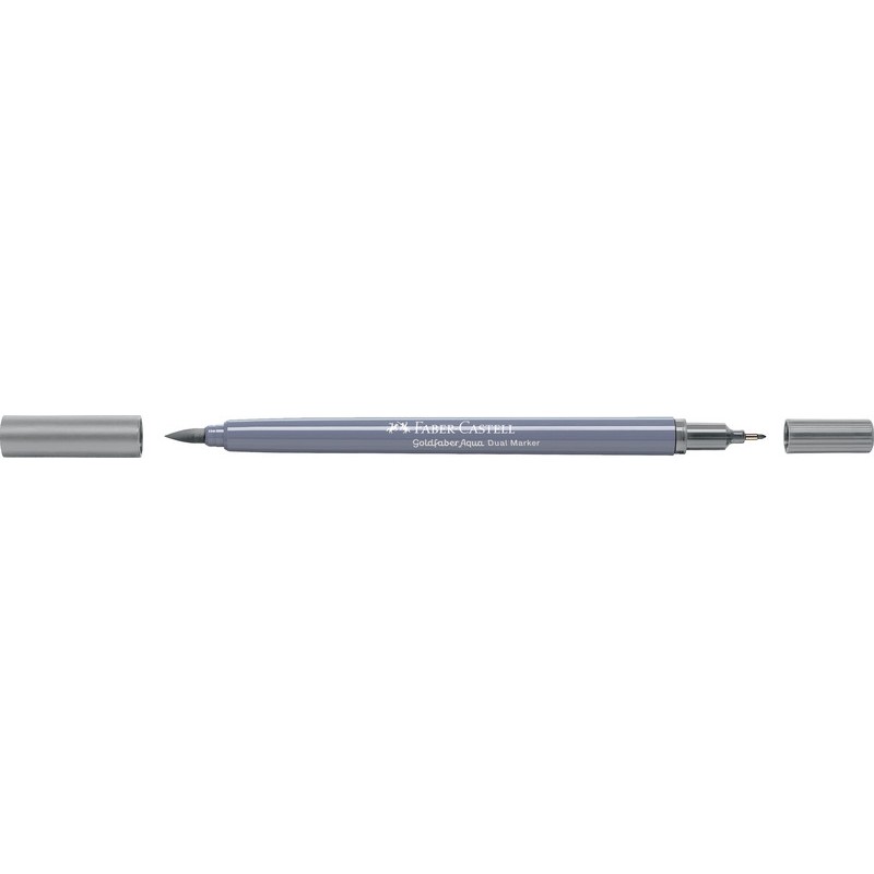 FABER-CASTELL Dual Marker Goldfaber Aqua Zweifunktionsmaler, Finelinerspitze 0,6 mm für Konturen und Details, Pinselspitze für feines, breites und flächiges Arbeiten, Tinte auf Wasserbasis, Verschlusskappe in der Schreibfarbe, wasservermalbar, geruchsneutral, säurefrei, pH-neutral, nicht nachfüllbar. Nachhaltigkeit eco:plus: verlängertes Produktleben, zurückgewonnene Energie, recycelter Bestandteil, Recycelgehalt Abfall vor Gebrauch max. 51%, Abfallminderung.
