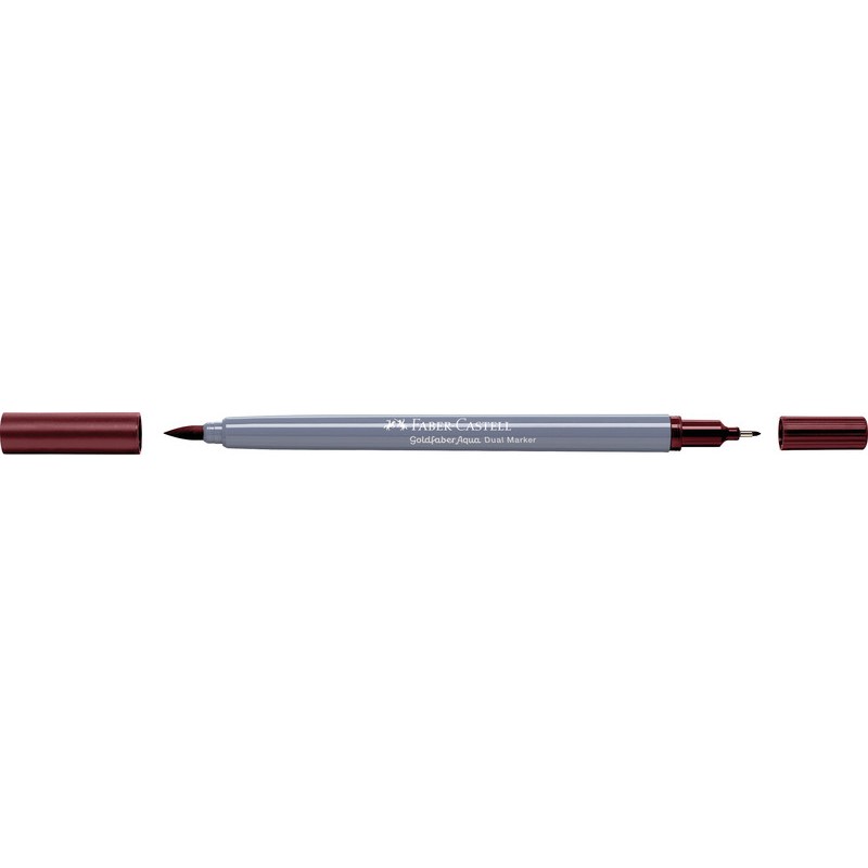 FABER-CASTELL Dual Marker Goldfaber Aqua Zweifunktionsmaler, Finelinerspitze 0,6 mm für Konturen und Details, Pinselspitze für feines, breites und flächiges Arbeiten, Tinte auf Wasserbasis, Verschlusskappe in der Schreibfarbe, wasservermalbar, geruchsneutral, säurefrei, pH-neutral, nicht nachfüllbar. Nachhaltigkeit eco:plus: verlängertes Produktleben, zurückgewonnene Energie, recycelter Bestandteil, Recycelgehalt Abfall vor Gebrauch max. 51%, Abfallminderung.