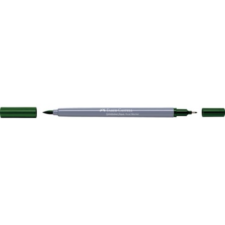 FABER-CASTELL Dual Marker Goldfaber Aqua Zweifunktionsmaler, Finelinerspitze 0,6 mm für Konturen und Details, Pinselspitze für feines, breites und flächiges Arbeiten, Tinte auf Wasserbasis, Verschlusskappe in der Schreibfarbe, wasservermalbar, geruchsneutral, säurefrei, pH-neutral, nicht nachfüllbar. Nachhaltigkeit eco:plus: verlängertes Produktleben, zurückgewonnene Energie, recycelter Bestandteil, Recycelgehalt Abfall vor Gebrauch max. 51%, Abfallminderung.