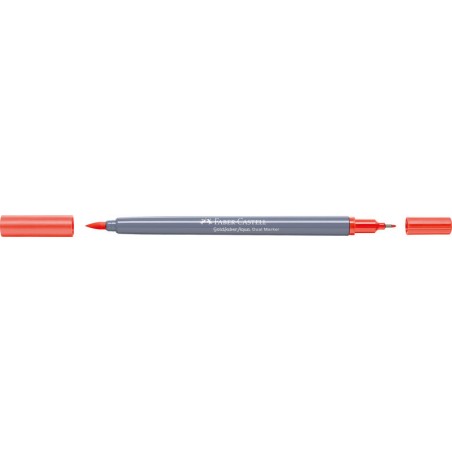 FABER-CASTELL Dual Marker Goldfaber Aqua Zweifunktionsmaler, Finelinerspitze 0,6 mm für Konturen und Details, Pinselspitze für feines, breites und flächiges Arbeiten, Tinte auf Wasserbasis, Verschlusskappe in der Schreibfarbe, wasservermalbar, geruchsneutral, säurefrei, pH-neutral, nicht nachfüllbar. Nachhaltigkeit eco:plus: verlängertes Produktleben, zurückgewonnene Energie, recycelter Bestandteil, Recycelgehalt Abfall vor Gebrauch max. 51%, Abfallminderung.