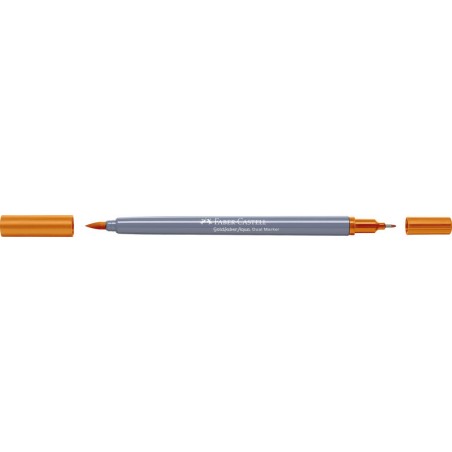 FABER-CASTELL Dual Marker Goldfaber Aqua Zweifunktionsmaler, Finelinerspitze 0,6 mm für Konturen und Details, Pinselspitze für feines, breites und flächiges Arbeiten, Tinte auf Wasserbasis, Verschlusskappe in der Schreibfarbe, wasservermalbar, geruchsneutral, säurefrei, pH-neutral, nicht nachfüllbar. Nachhaltigkeit eco:plus: verlängertes Produktleben, zurückgewonnene Energie, recycelter Bestandteil, Recycelgehalt Abfall vor Gebrauch max. 51%, Abfallminderung.