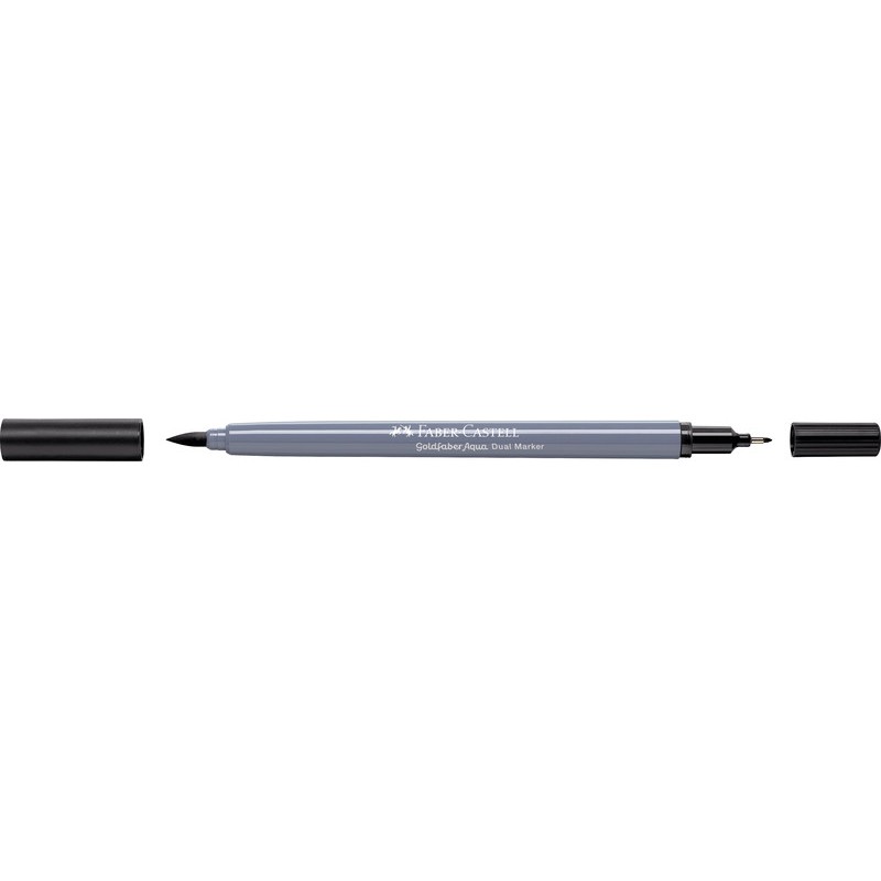 FABER-CASTELL Dual Marker Goldfaber Aqua Zweifunktionsmaler, Finelinerspitze 0,6 mm für Konturen und Details, Pinselspitze für feines, breites und flächiges Arbeiten, Tinte auf Wasserbasis, Verschlusskappe in der Schreibfarbe, wasservermalbar, geruchsneutral, säurefrei, pH-neutral, nicht nachfüllbar. Nachhaltigkeit eco:plus: verlängertes Produktleben, zurückgewonnene Energie, recycelter Bestandteil, Recycelgehalt Abfall vor Gebrauch max. 51%, Abfallminderung.