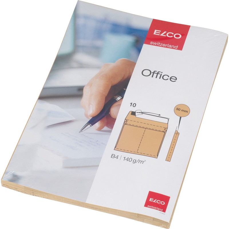 ELCO Aktenfalten-Briefumschläge Office braun, mit Optifix® Haftklebeverschluss, Öffnung an der Breitseite. Nachhaltigkeit eco:plus: recyclingfähig.