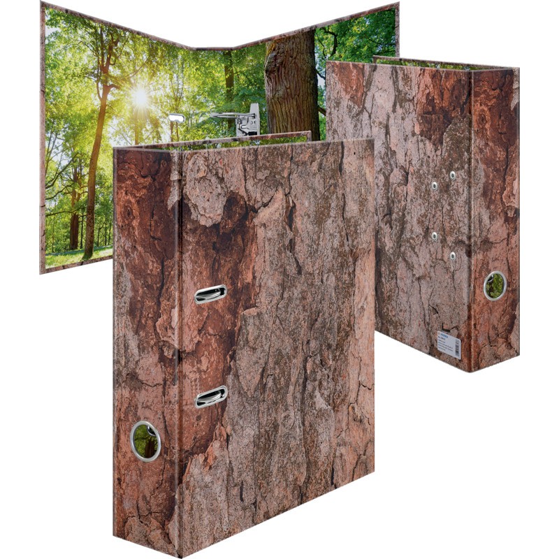 HERMA Ordner Nature aus stabilem Karton, haptisch veredelt durch spezielle Beschichtung, innen und aussen vollflächig bedruckt, mit Raumsparösen und Griffloch, Hebelmechanik, Rückenbreite 7 cm, für Format A4.